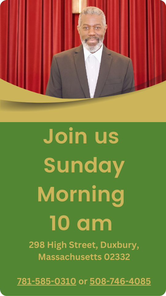 We want to invite you to attend our next Sunday morning service at 10 am. We are located at 298 High Street, Duxbury, Massachusetts 02332. Our services start with a lively praise & worship service and band.
